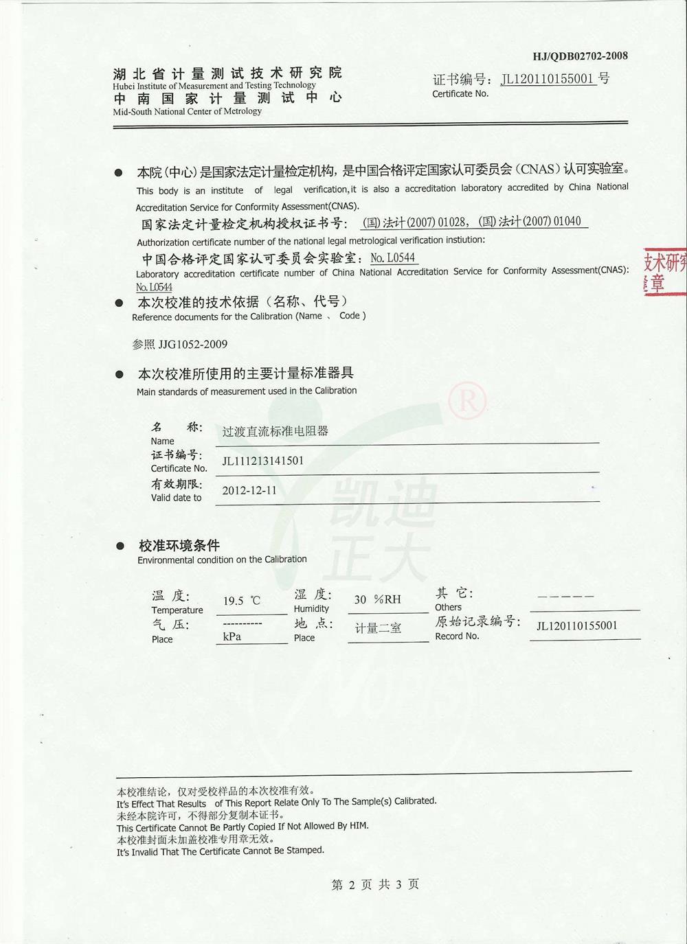 • 校准证书